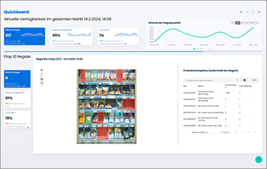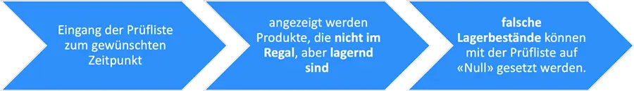 Jeden Tag um 13.00 Uhr erhalten Sie eine Prüfliste, die Ihnen auf einen Blick zeigt, welche Produkte im Regal nicht verfügbar, jedoch im Lager noch vorhanden sind. Falls der Bestand nicht korrekt ist, kann dieser bequem mit dem Barcode korrigiert werden.